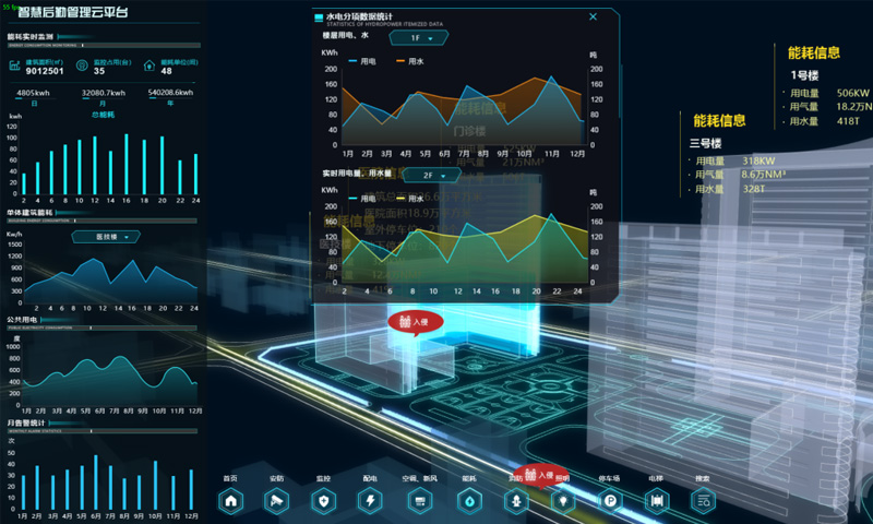 能對(duì)建筑內(nèi)的水、電、氣能耗進(jìn)行數(shù)據(jù)實(shí)時(shí)采集、匯總、分析,并上傳至管控中心,使用戶能源管理者直觀了解到本單位耗能情況,為用能管理提供數(shù)據(jù)支撐,可上傳至當(dāng)?shù)卣芎钠脚_(tái)